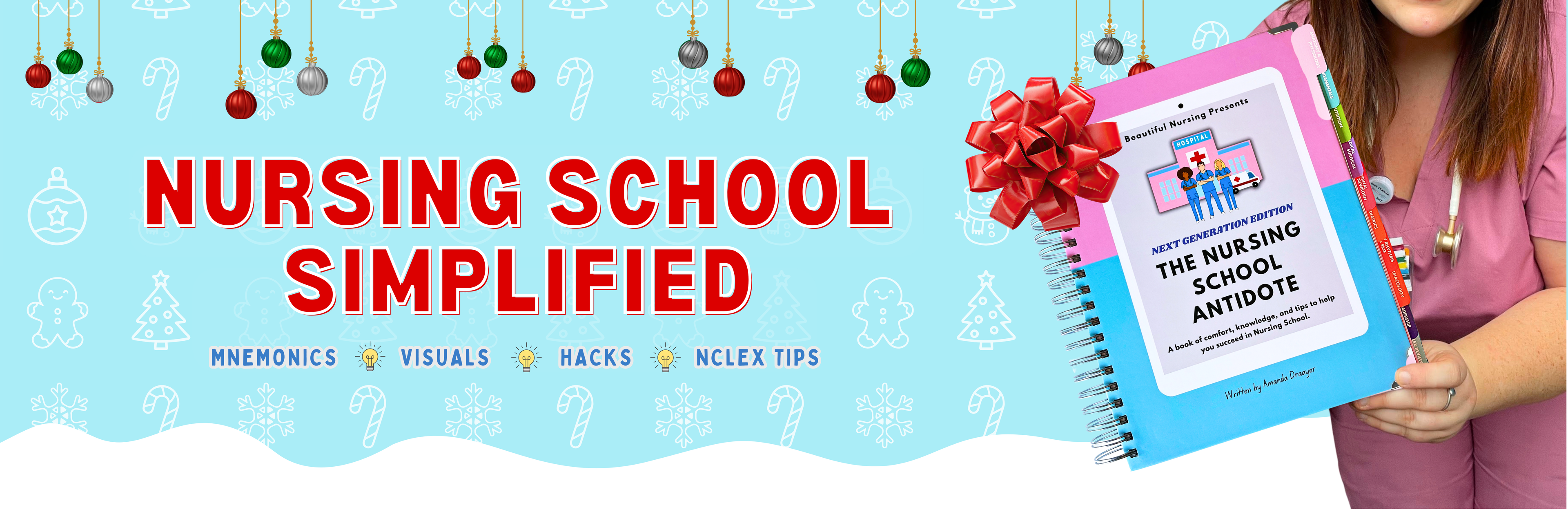 Nursing school is hard. I made it my mission to help simplify the hard stuff and create a textbook with straight-to-the-point information, is designed for visual learners, and filled with mnemonics.